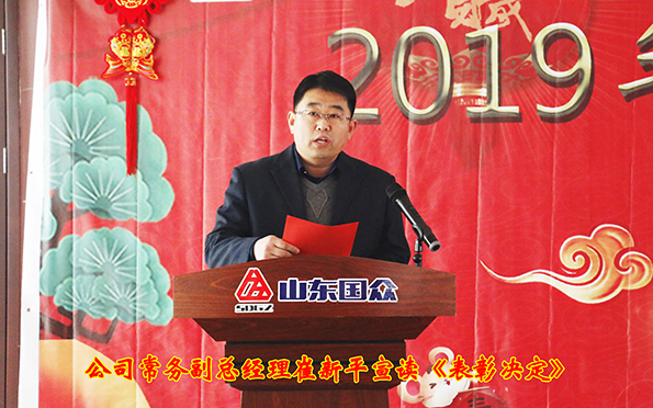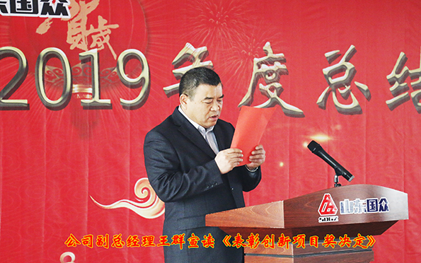 會上,公司常務副總經(jīng)理崔新平宣讀了公司2019年度表彰決定;公司副總經(jīng)理王群宣讀了關于表彰優(yōu)秀創(chuàng)新項目的決定。